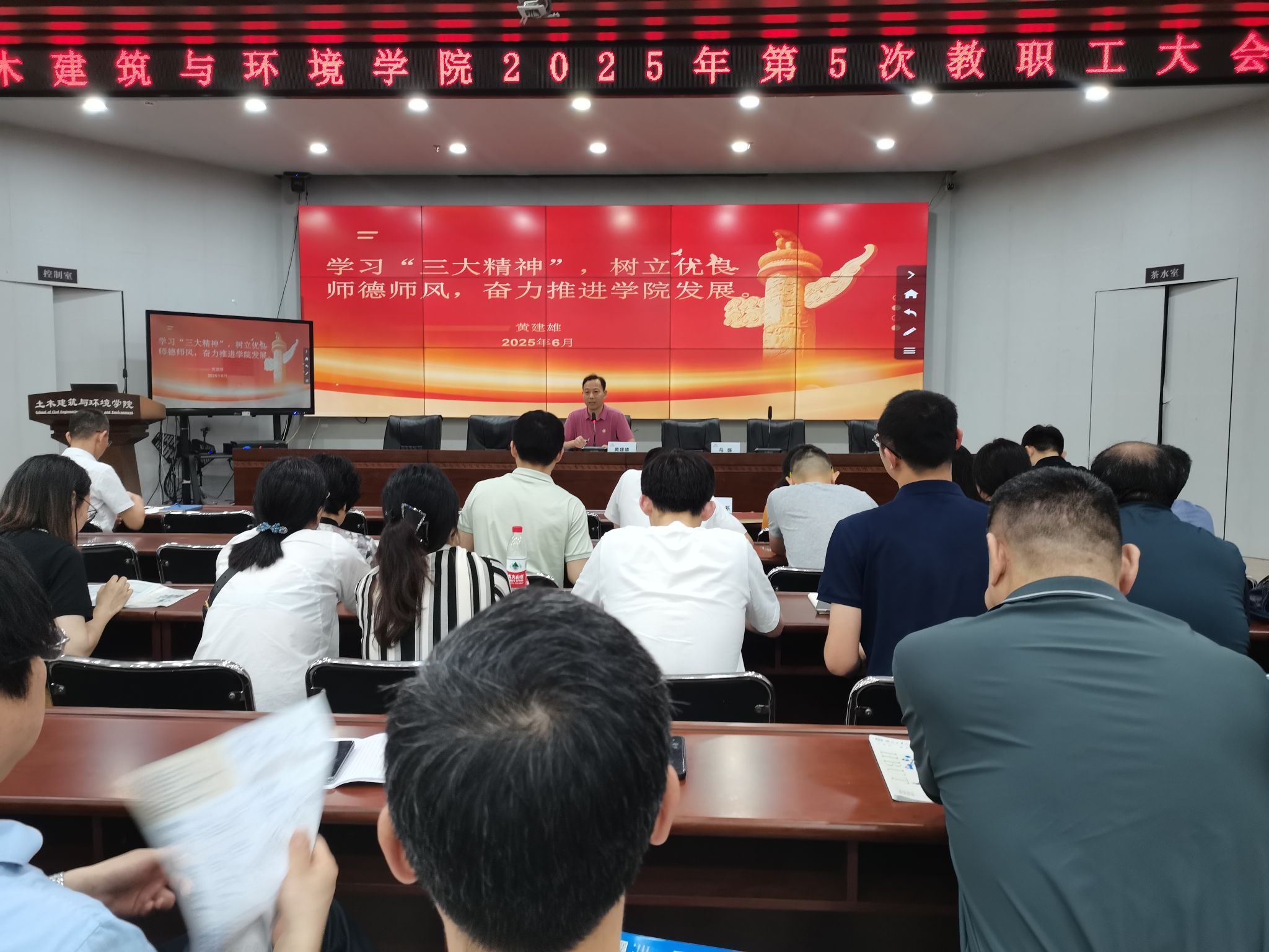 6月19日,学院召开2024-2025学年第二学期期末教职工大会,学院全体教职工参加会议。会议由院党委书记黄建雄主持。