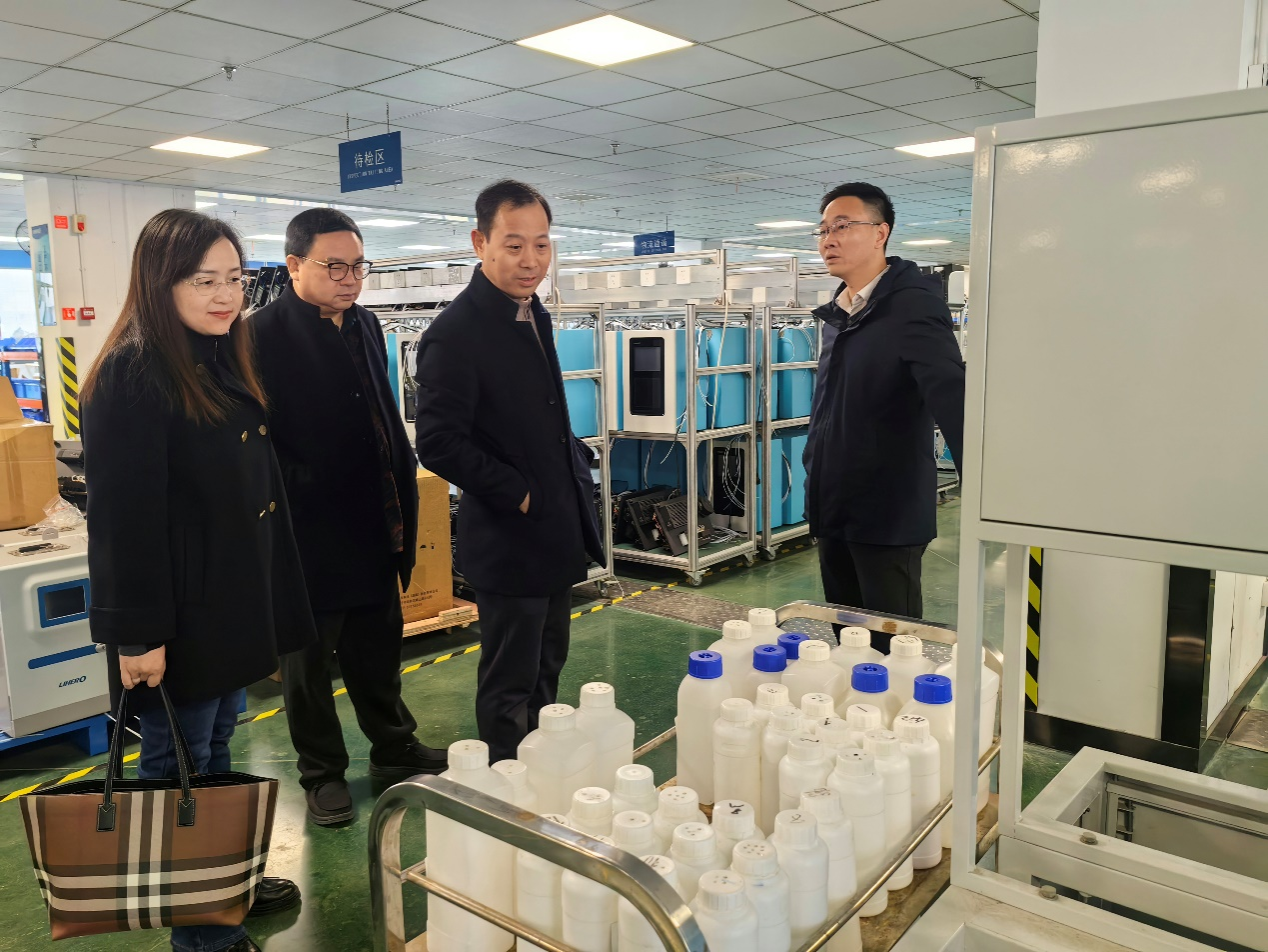 力合科技(湖南)股份有限公司董事长邹雄伟、总经理文立群、副总经理张辉等公司领导热情接待了黄建雄一行。双方首先参观了力合科技(湖南)股份有限公司实验室,详细了解了水质监测仪器装备、大气监测仪器装备、监测系统集成、工业过程控制监测产品和监测信息化平台研发情况。张辉详细介绍了力合科技(湖南)股份有限公司的发展历程、营销网络、业务领域、业务能力、平台建设等基本情况。公司招聘负责人陈慧介绍了人才引进以及员工职业发展情况,强调了双方在学生培养、人才输送和科研创新方面的合作潜力。