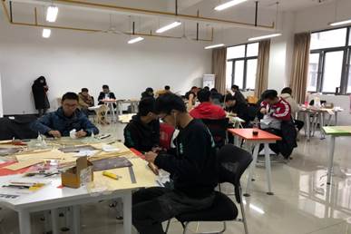 图1学生进行模型设计和制作现场
