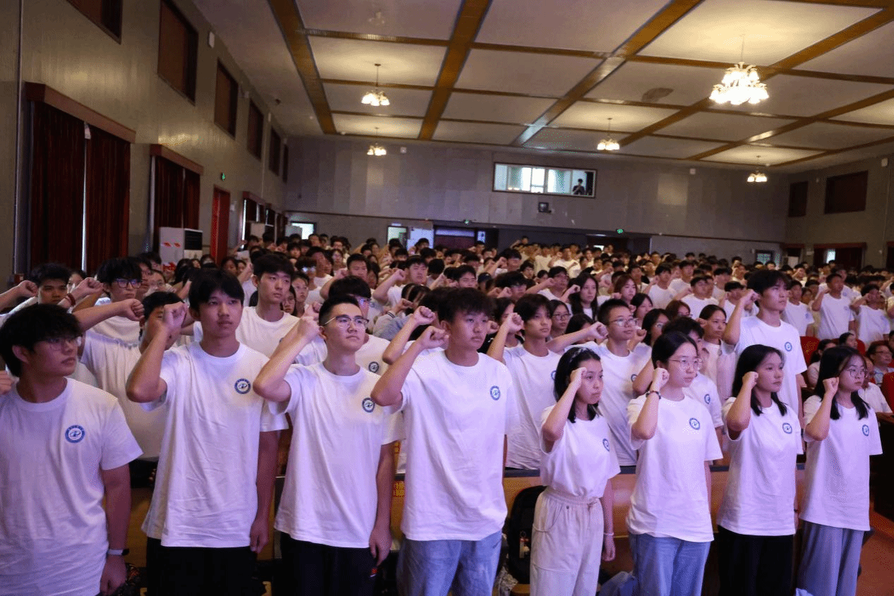 在新生入学宣誓环节,全体新生庄严承诺践行校训精神,恪守高校学生行为准则,争做新时代好青年,展现了昂扬向上的精神风貌。