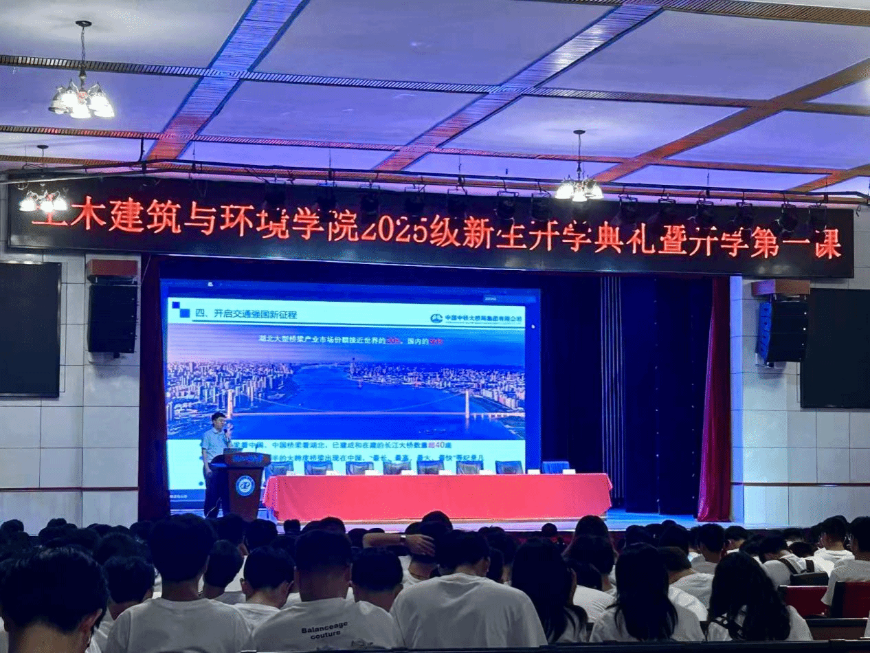 9月28日下午,土木建筑与环境学院2025级新生开学典礼暨开学第一课在学校大礼堂隆重举行。学院领导班子成员、教师代表、2025级学业导师代表、2025级班导师、全体辅导员及2025级本科生共同参加。