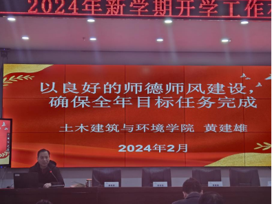 2月29日下午,土木建筑与环境学院召开2024年新学期开学工作布置会。全体院领导及教职工参加了会议,会议由院长肖衡林主持。
