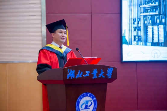 在本科生毕业典礼上,湖北工业大学党委常委、副校长宋小春教授,学院领导和各系主任、辅导员、毕业班班导师、教师及家长代表参加毕业典礼。典礼由学院党委副书记周利涛主持。