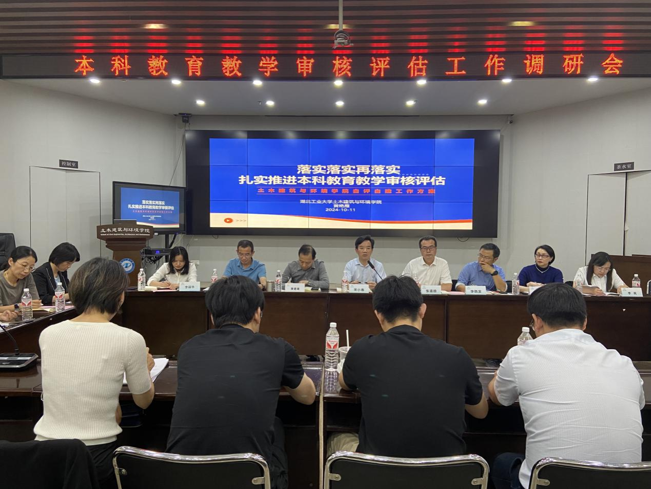 10月11日下午,副校长宋小春、教务处处长张道德、副处长李晓波、审核评估办公室相关同志一行调研土木建筑与环境学院本科教育教学审核评估工作。学院院系领导,专业负责人,骨干教师代表、督导及实验中心、综合办、培养办相关人员参加了会议。