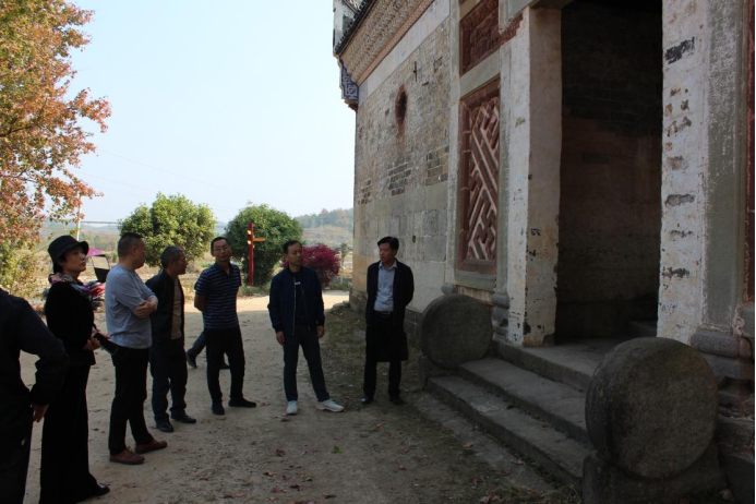 在八里湾镇陡山村,黄建雄一行实地探访了“鄂东第一祠”的吴氏祠,对其文化历史、建筑特色和保护性开发进行了全面了解,详细听取了村干部对该项目的建设需求,现场就文物保护、古村落修复等方面进行深入探讨,并从专业角度提出了建设性指导意见。