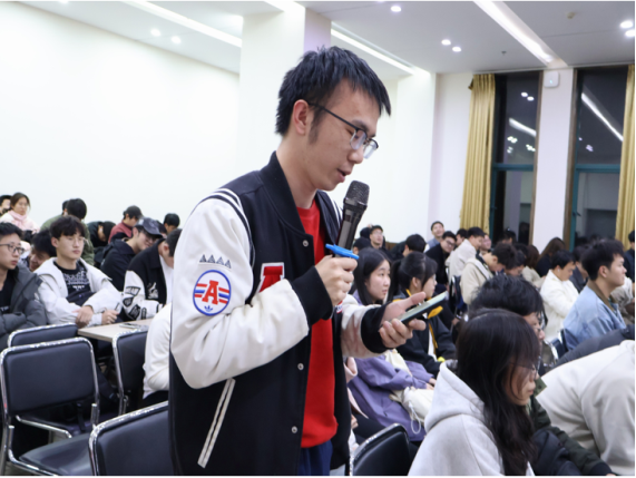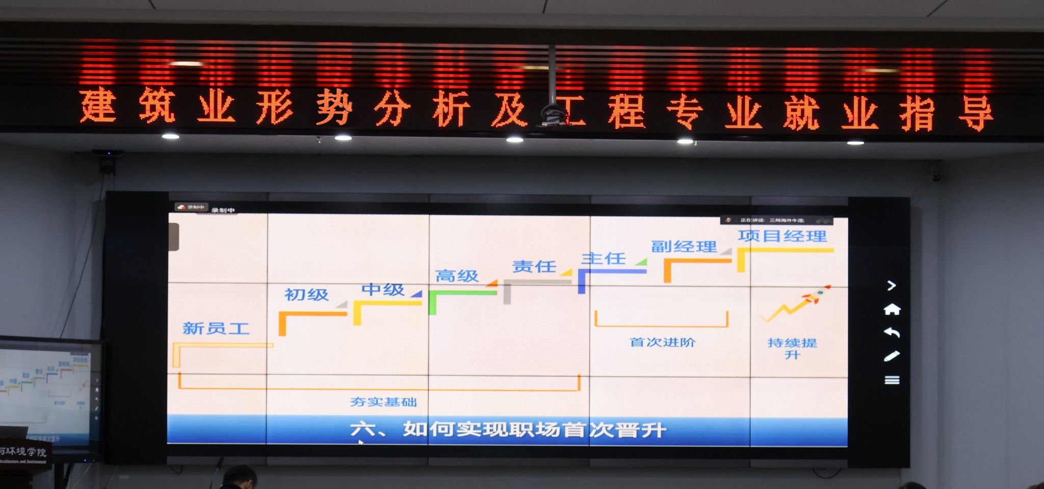 在互动环节,学生们积极提问,牛滢部长耐心解答,他特别指出中建三局国际公司等大型企业依然会保障校招名额,为优秀毕业生提供就业机会。李彪也通过他自身的经历向大家展示了土建专业学生就业途径的多样性。此次讲座不仅加深了学子们对建筑业的认识和理解,也为他们未来的职业发展指明了方向。