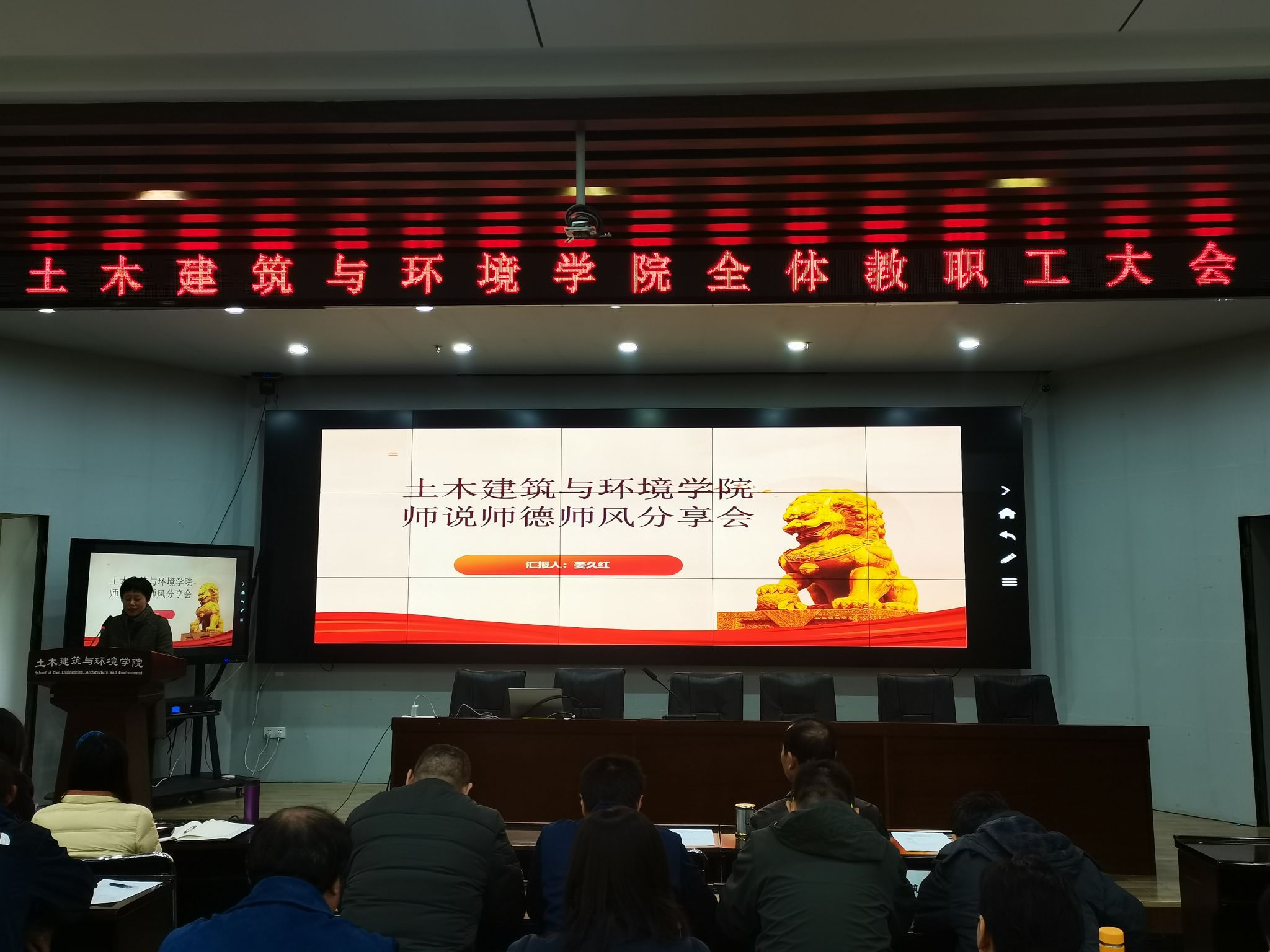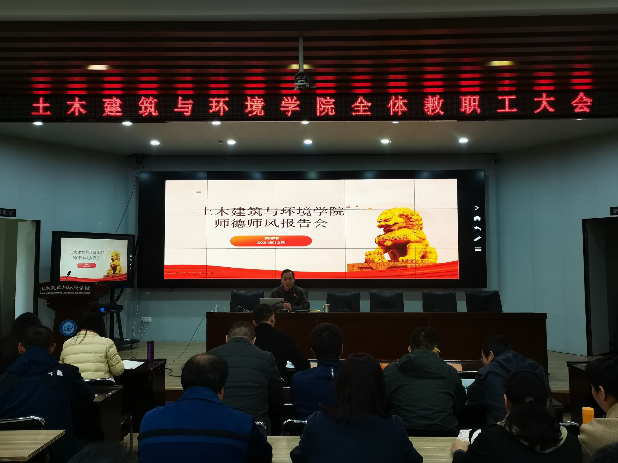 12月5日,土木建筑与环境学院召开教职工大会,开展师德师风专题学习。会议由院党委副书记周利涛主持。