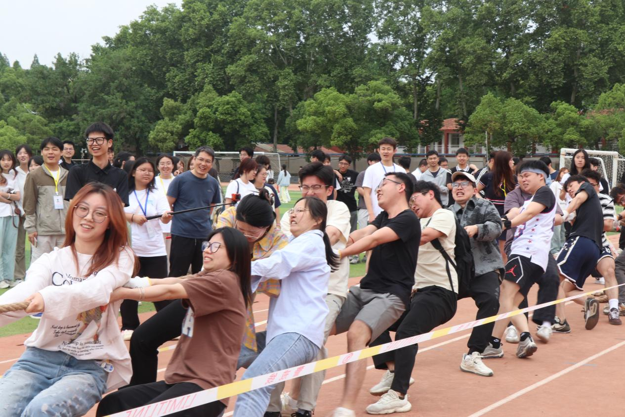 本届运动会以师生协同赛事促进情感联结,创新项目设计呼应“五育并举”教育理念,设置常规赛、趣味赛、自主赛三大板块,共吸引千余名师生参与。在中区运动场举行的传统项目中,20×50米混合接力赛、拔河赛、跳大绳比赛考验各系师生团队协作,将师生情谊淬炼成金。