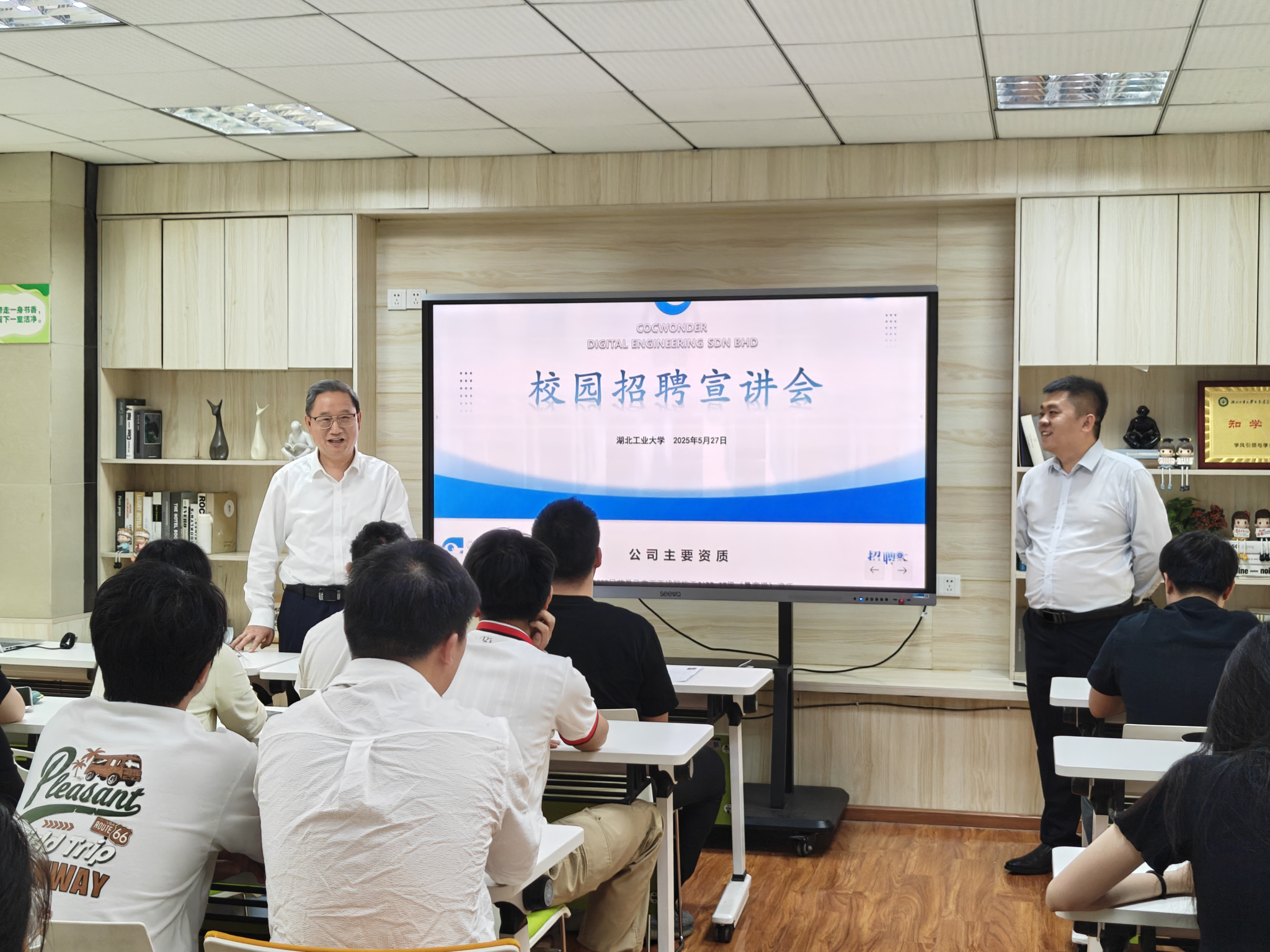 5月27日,校友企业COCWONDER数字工程有限公司在土木建筑与环境学院“知学空间”举办专场招聘会。校党委书记彭育园亲临现场,与企业进行交流,为学生开展就业指导。该企业是2024年彭育园率我校代表团赴马来西亚吉隆坡参加AMBA&BGA亚太会议期间重点访问的校友企业,此次招聘会是全校访企拓岗、深化校企合作的又一里程碑。