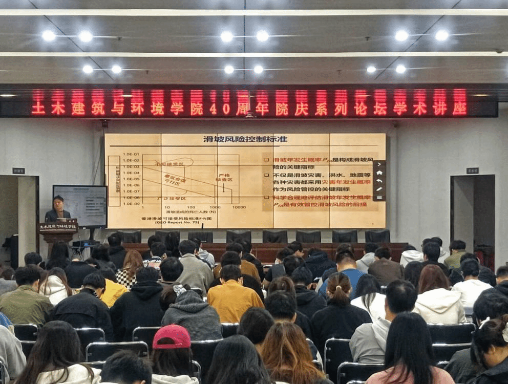刘鑫教授以严谨的学术态度、生动的案例分析,为我院学生打开了理解工程风险与防灾减灾的新思路。讲座最后,他与现场师生展开热烈的互动,就降雨诱发滑坡风险定量分析进行了深入探讨。
