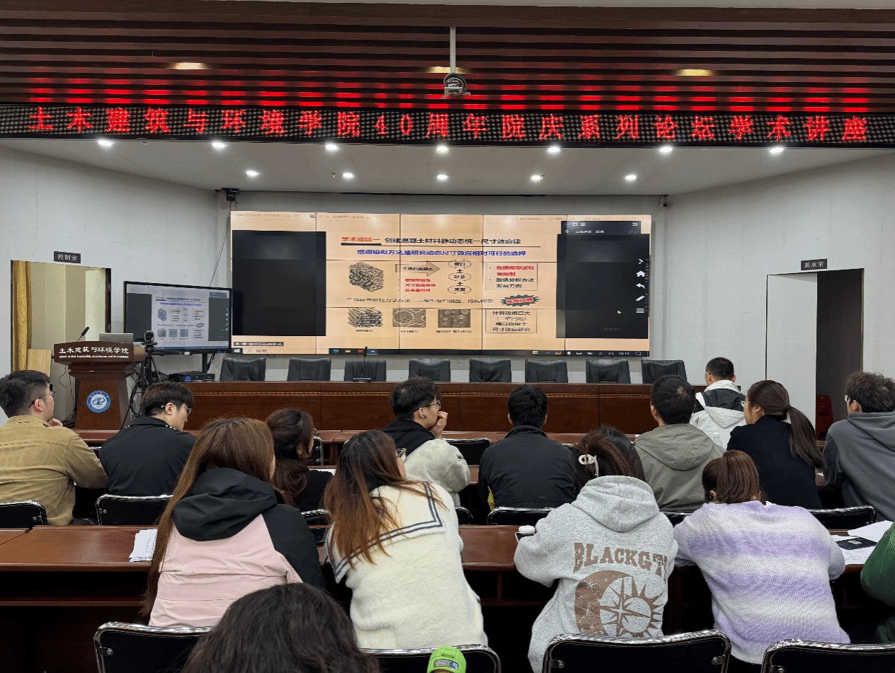 此次讲座聚焦工程科学前沿,围绕实际工程结构所面临的关键科学问题,展开系统性讲述,具有非常重要的启发性,能够有效助力学院师生未来教育教学及科学研究工作,有效鼓舞师生在工程材料与结构领域深入探索,在工程结构防灾减灾及多灾害智能防护等方面步履不停、行稳致远。