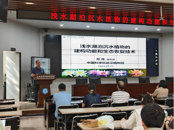 2024年5月23日,中国科学院武汉植物园邢伟研究员在土建楼三楼报告厅为我院师生开展了以“浅水湖泊沉水植物的建构功能和生态恢复技术”为题的学术讲座。