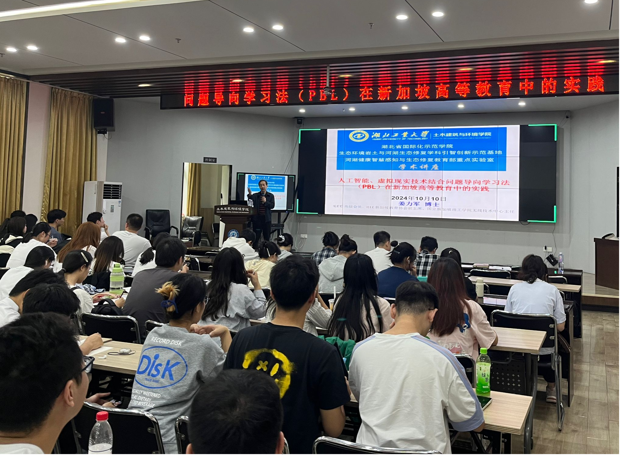 2024年10月10日国立新加坡理工学院姜力军教授在湖北工业大学土木建筑与环境学院三楼报告厅为我院师生做了题为“问题导向学习法(PBL)在新加坡高等教育中的实践”的精彩学术报告。