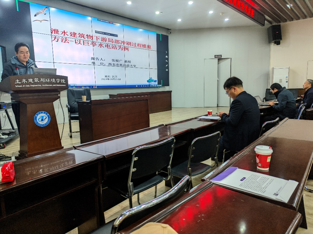 2024年10月21日,西北农林科技大学张根广教授和高建恩教授在湖北工业大学土木建筑与环境学院三楼报告厅为我院师生分别做了题为“泄水建筑物下游局部冲刷过程模拟方法及应用”、“黄土高原水沙调控与高效利用技术”的学术报告。