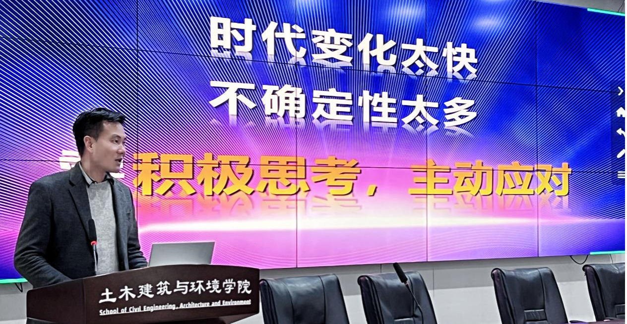 报告中,陈文峰从土木工程行业现状、人工智能对土木工程的影响、土木工程行业发展前景、大学生职业规划建议等方面提出了自己观点,如“土木行业不是夕阳行业也不是朝阳行业,而是永不落行业”的重要总结。陈文峰认为,人工智能促进土木工程变革,行业发展将迎来更多机遇,同学们应坚定信心,打好专业基础,提升综合能力,构建核心竞争力。