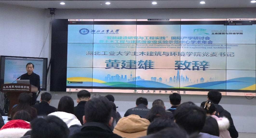 12月18日,“智能建造研究与工程实践”国际产学研讨会暨土木工程与建筑国家级实验示范中心学术年会在湖北工业大学土木建筑与环境学院召开。会议邀请了美国、澳大利亚以及国内知名学者做大会主旨报告。来自全国高校、科研院所、企事业单位的150余名专家代表线上线下参会。研讨会由湖北工业大学土木建筑与环境学院、土木工程与建筑国家级实验教学示范中心、湖北工业大学土木建筑与环境学院省级国际化示范学院、河湖健康智慧感知与生态修复教育部重点实验室、水环境污染监测先进技术与装备国家工程研究中心主办。