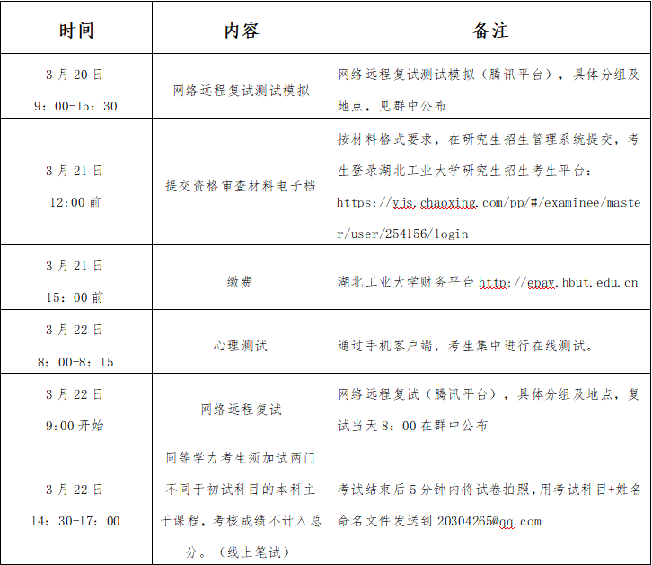 注:以上为一志愿考生复试安排,如有调整将提前另行通知;调剂考生的复试工作,具体安排见学院网站通知公告栏发布的相关调剂公告。