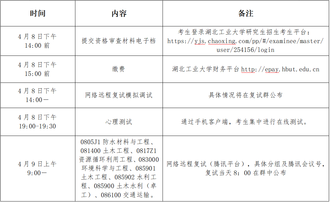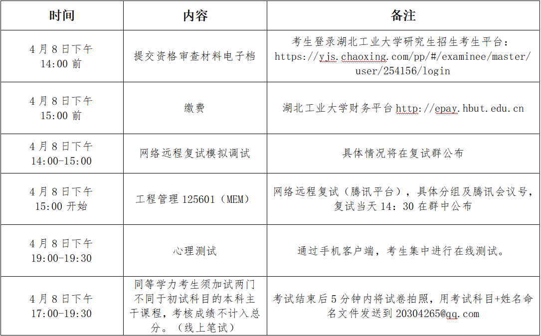 注:以上项目时间如有调整,将提前另行通知;调剂考生的复试工作,具体安排见学院网站通知公告栏发布的相关调剂公告。