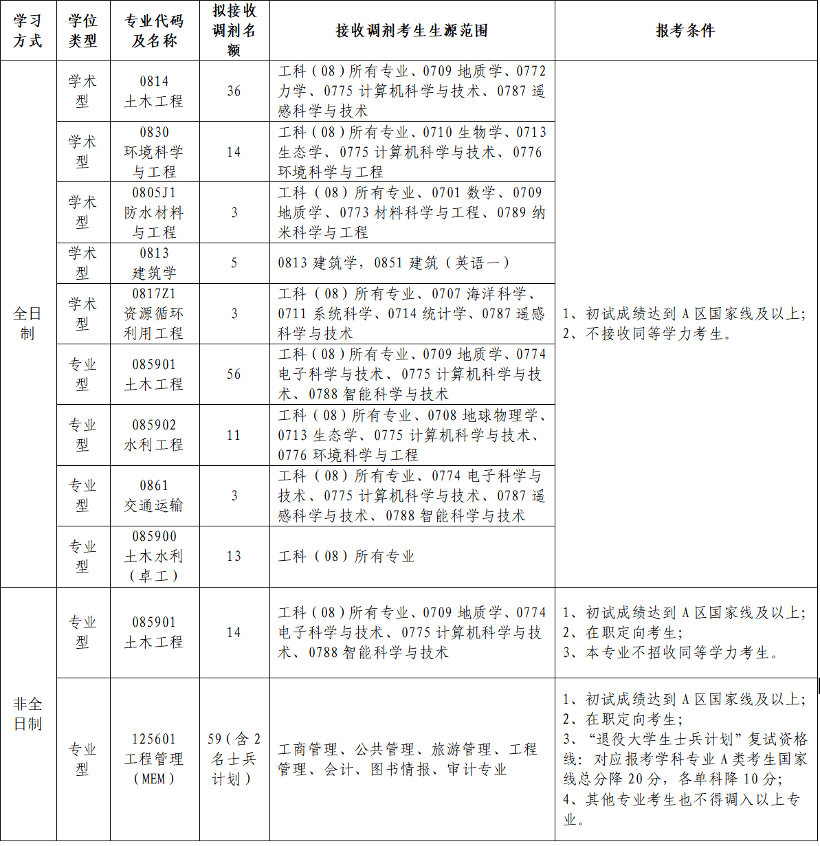 网络远程复试专业:0805J1防水材料与工程、081400土木工程、0817Z1资源循环利用工程、083000环境科学与工程、085901土木工程、085902水利工程、085900土木水利(卓工)、086100交通运输。
