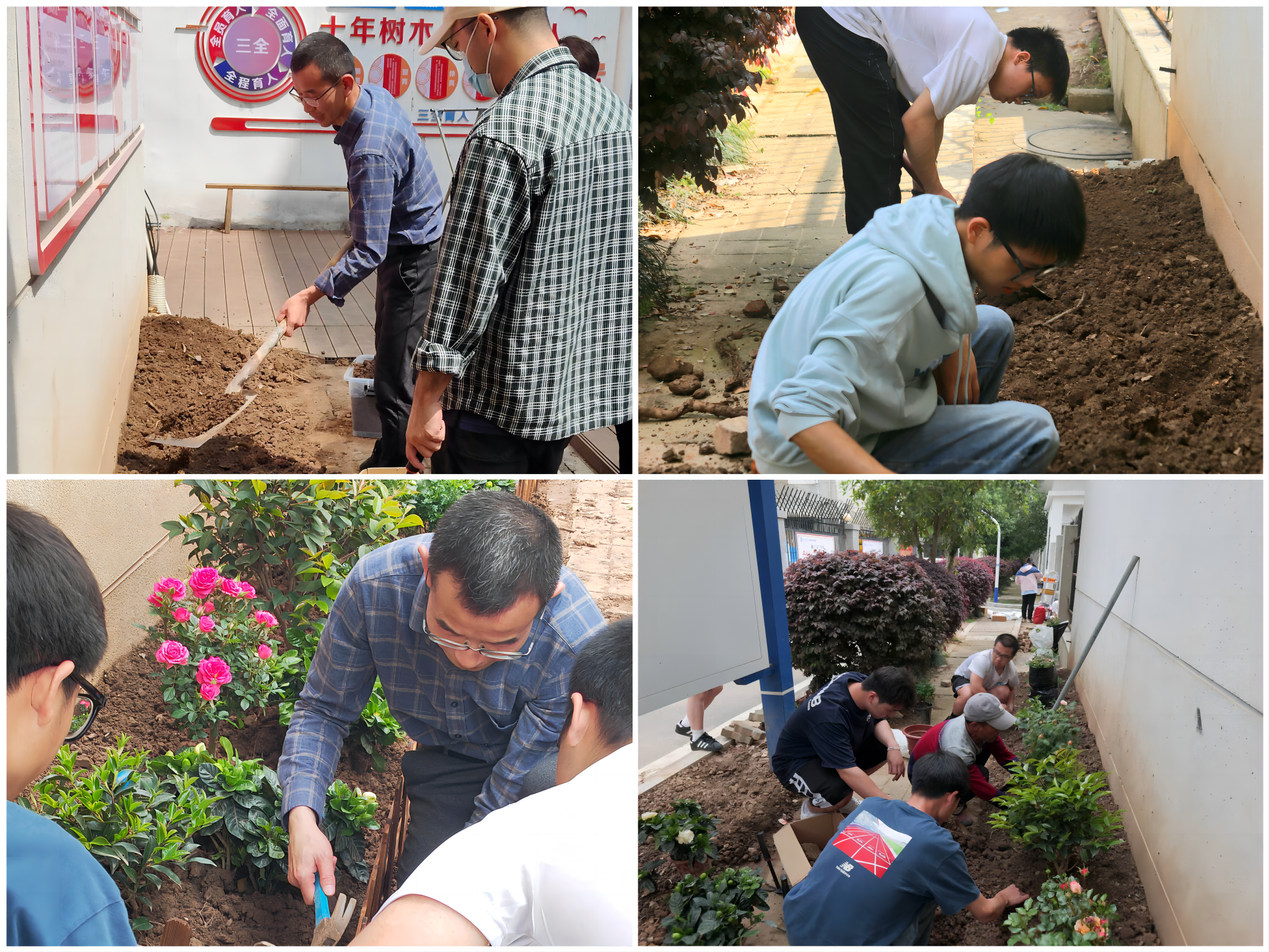 活动过程中,邀请园林专业老师为同学们详细讲解各种花卉的形态特征、生长习性等相关知识,铁锹、锄头等劳动工具的使用方式和注意事项,并亲自示范翻土平地、撒种浇水等操作要点。师生们掌握方法,团结协作,挥锹翻土、移盆栽花、浇水灌溉,各个环节衔接有序,配合默契。在师生的共同努力下,学院“一站式”学生社区门口的劳动实践园地种满了栀子、月季、杜鹃以及各类盆栽。