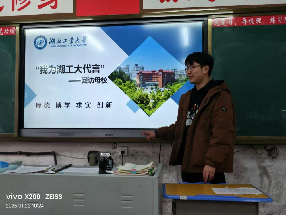 2025年寒假,学院遴选50余名学生骨干组成返家乡实践队分赴宜昌、钟祥等地,在宜昌一中、夷陵中学、钟祥一中等11所重点高中开展了“我为湖工大代言”寒假招生宣传主题社会实践活动,通过多种形式多元化展现湖工大办学特色,助力高中学子生涯规划。专项活动得到了学校招就处的悉心指导。