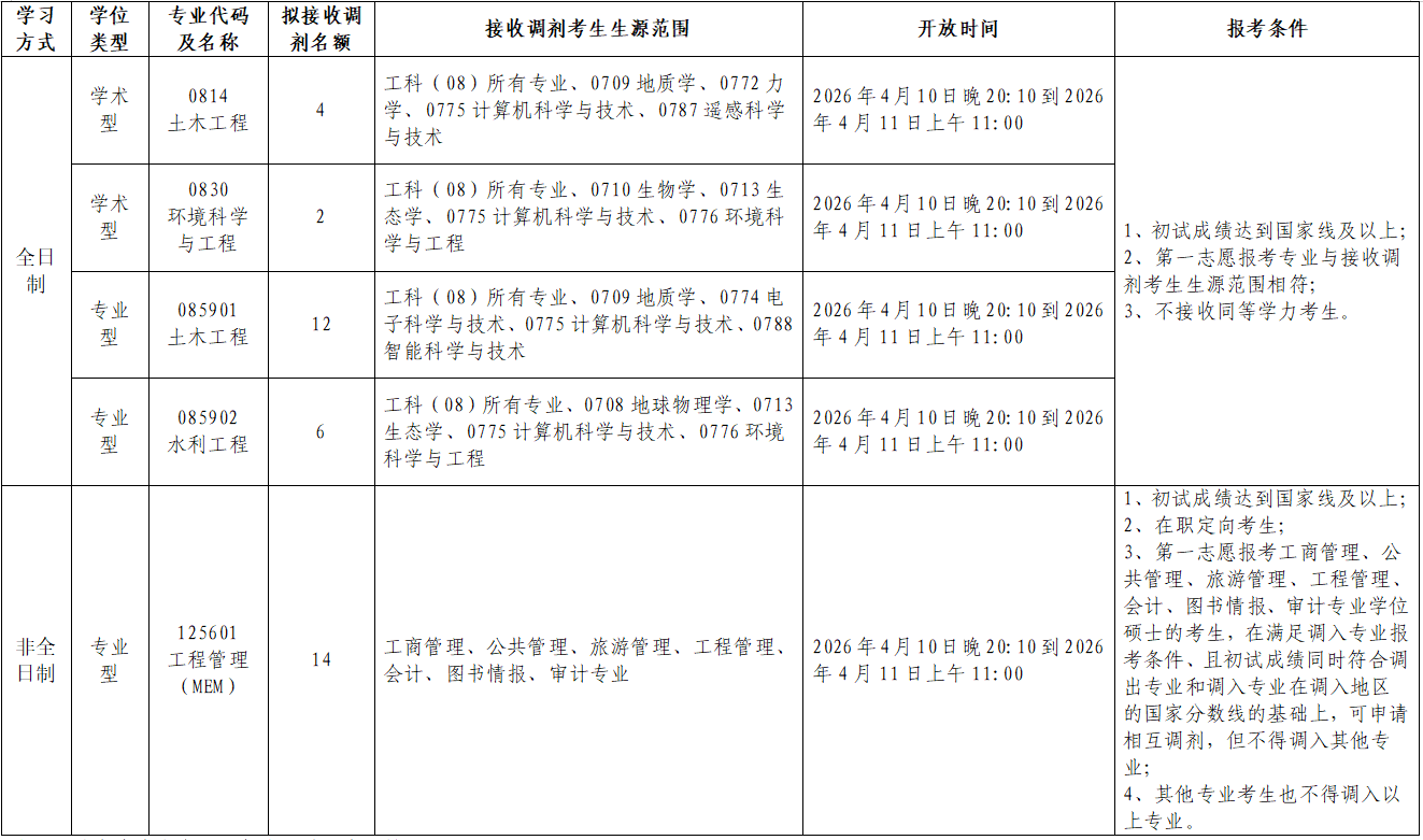 2026年硕士研究生招生我院有部分研究生调剂名额,热忱欢迎全国各地优秀考生调剂到我院继续深造。为方便考生调剂报考我院,现将我院2026年调剂工作的相关信息公布如下: